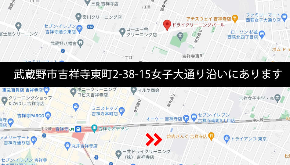 吉祥寺 クリーニング 集配 ドライクリーニングパール 武蔵野市吉祥寺東町5-1-8 Google Mapで表示する TEL 090-1039-9436